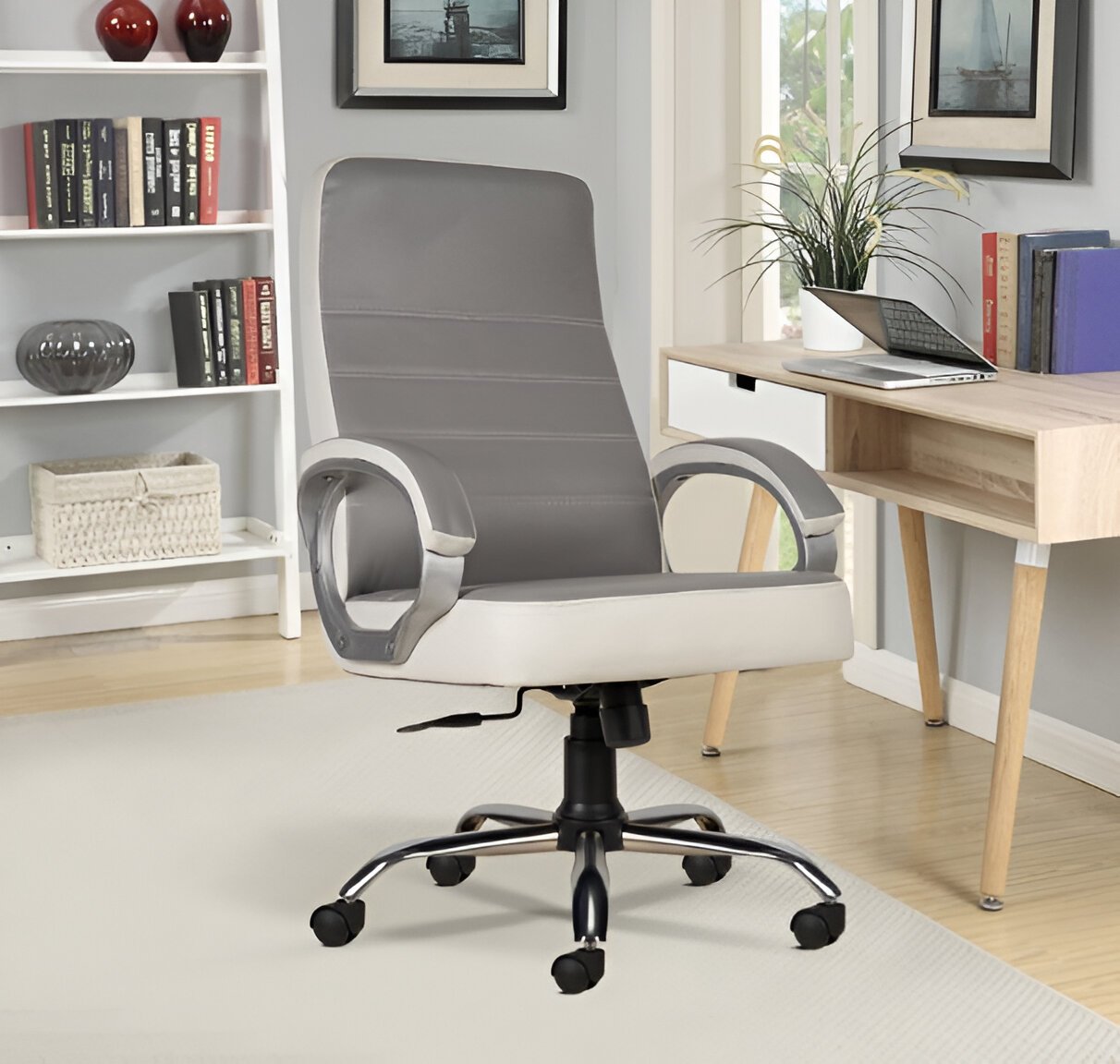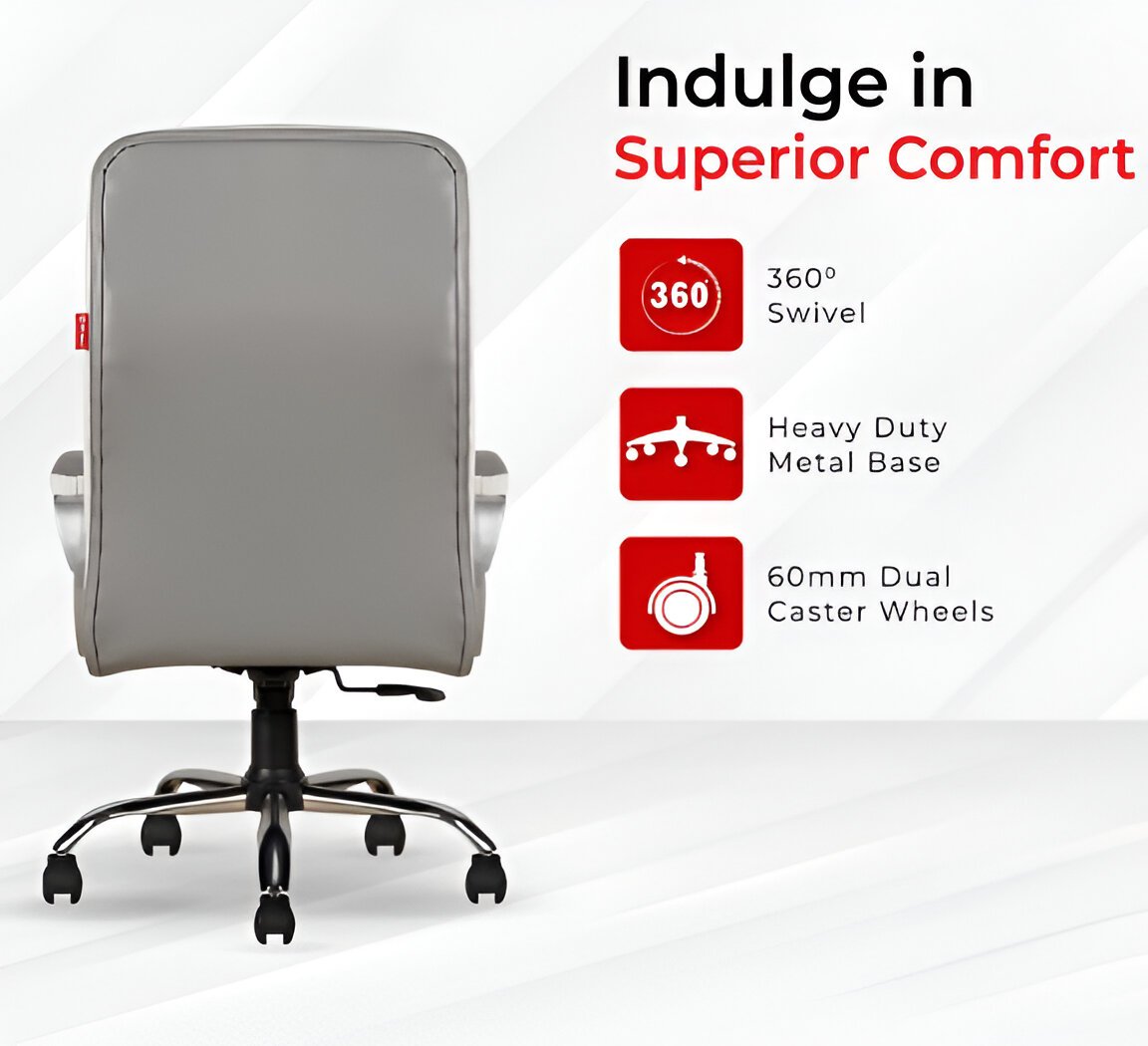 Ammu’s C99 Apex High Back Leatherette Boss Chair/Revolving Chair/Office Chair/Computer Chair for Work from Home and Office with 3 Years of Warranty (White & Grey, High Back)