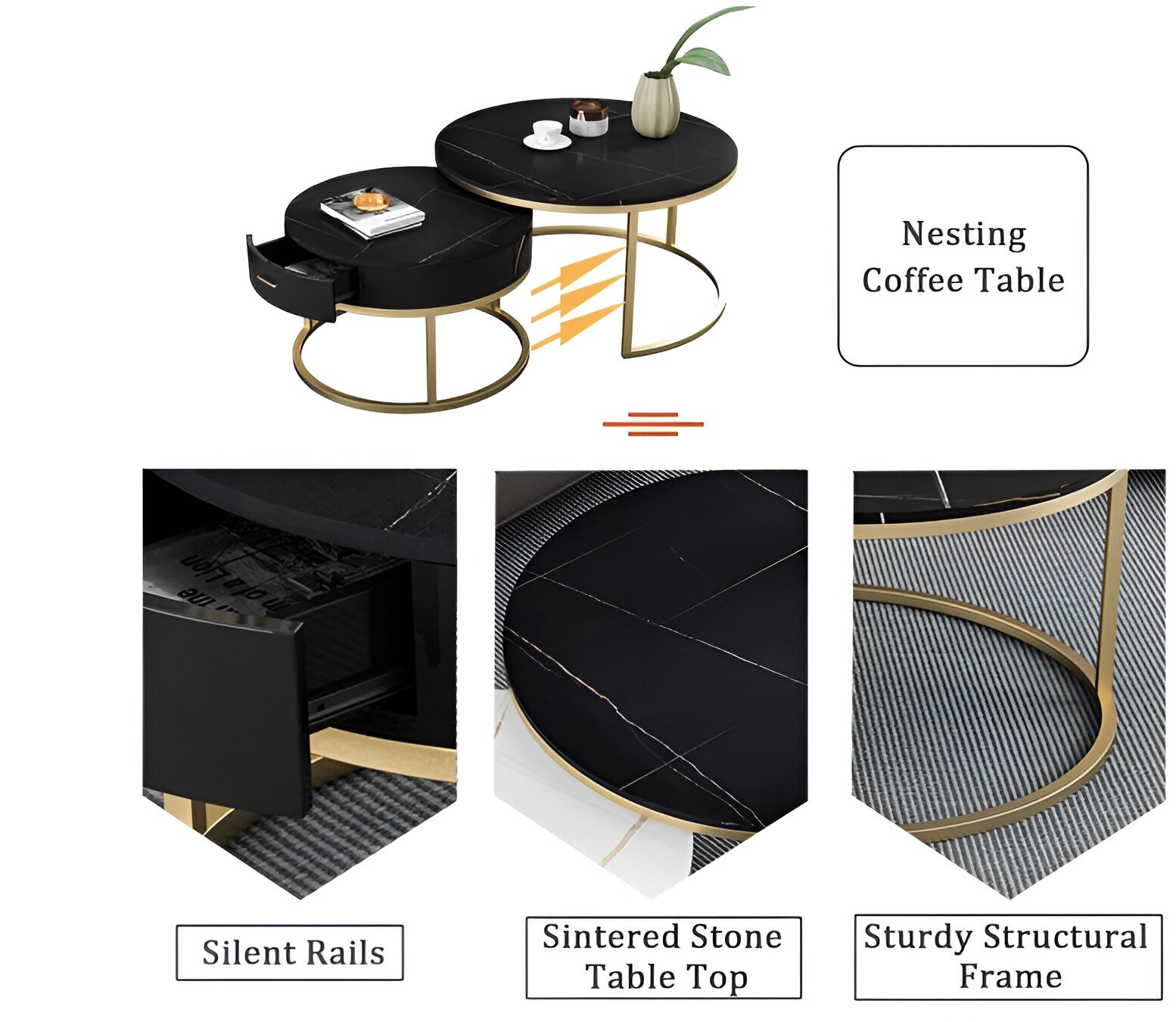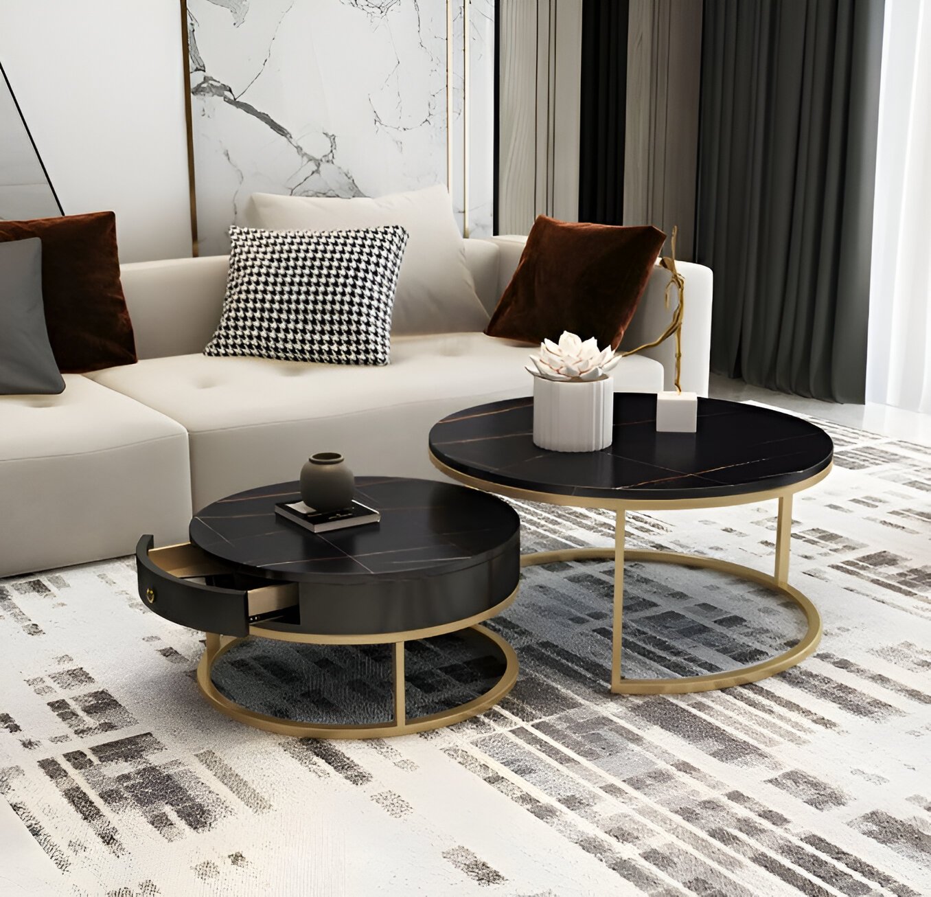 Be the first to review “Ammu’s Modern Round Coffee Tables Marbled Laminated Stackable Center Table with 1 Drawer Storage for Living Room Bedroom (Black Gold)” Cancel reply